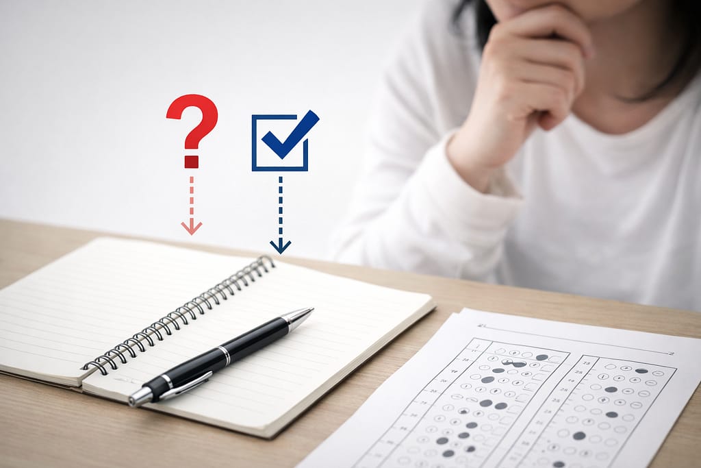 簡単な問題ほど、解いた後に問題文、問題用紙、回答用紙、指示、丁寧に見ます。