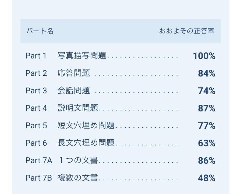 パートごとの正答率は以下の通りです。